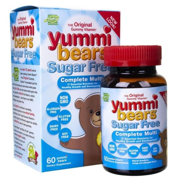 Składniki: Witamina A (jako palmitynian retinylu); Witamina C (jako kwas askorbinowy); Witamina D (jako cholekalcyferol); Witamina E (jako octan tokoferylu dl-alfa); Niacyna (jako niacynamid); Witamina B6 (jako chlorowodorek pirydoksyny); Kwas foliowy; Witamina B12 (jako cyjanokobalamina); Kwas pantotenowy (jako pantotenian wapnia); Biotyna (jako biotyna); Wapń (jako cytrynian wapnia); Jod (jako jodek potasu); Magnez (jako cytrynian magnezu); Cynk (jako cytrynian cynku); Cholina (jako wodorowinian choliny); Inozytol; włókno rozpuszczalne w korzeniu cykorii (inulina), żelatyna, kwas mlekowy, kwas cytrynowy, naturalne aromaty (truskawka, ananas, pomarańcza), organiczne kolory (jabłko, marchew, dynia, koncentraty soków z czarnej porzeczki), olej kokosowy i wosk karnauba, aby zapobiec przywieraniu.
