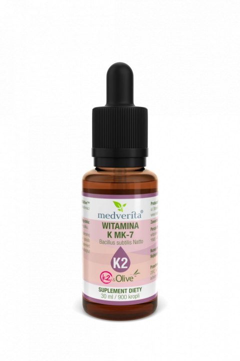Składniki: oliwa z oliwek, witamina K K2&Olive™ (menachinon-7), witamina E / przeciwutleniacz (octan D-alfa tokoferylu).