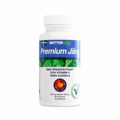 Żelazo w kapsułkach. Premium Iron zawiera łatwo przyswajalną formę fumaranu żelaza, a także witaminę C z owoców Aceroli i ekstraktu szpinaku. Witamina C poprawia wchłanianie żelaza.